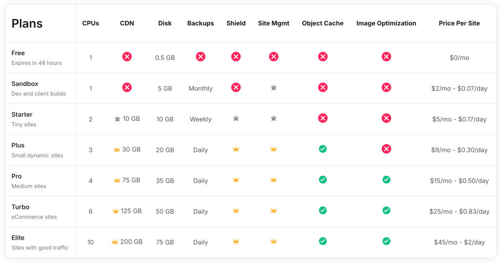 Kinsta’s pricing starts at $30/month for a single WordPress website, which includes 10GB of SSD storage and 35,000 monthly website visits.