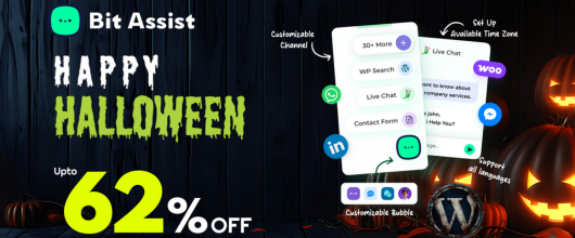 Bit Assist is a simple yet powerful WordPress chat plugin that combines 30+ messaging apps in one widget. Connect with customers through WhatsApp, Messenger, Telegram, or live chat tools like Tidio and Tawk.to. Boost engagement, support, and conversions with instant communication — now up to 62% OFF this Halloween.