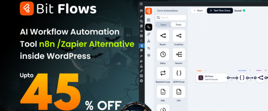 Bit Flows is a self-hosted, no-code automation platform — a smarter, budget-friendly alternative to Zapier. Build unlimited workflows with 210+ integrations, AI-powered actions, and advanced tools like Delay, Router, and Schedule. Automate WordPress, SaaS, or custom processes without limits or monthly fees.