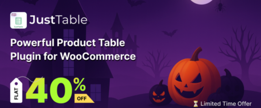 JustTables is a WooCommerce product table plugin that helps you display products in sortable, filterable tables. With 25+ pre-built columns and drag-and-drop controls, showcasing products is effortless. This Halloween, grab 40% OFF and boost conversions beautifully.