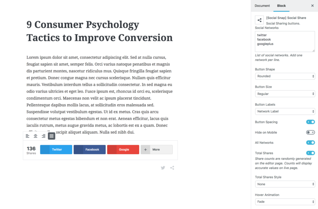 Social Share block for easy content distribution