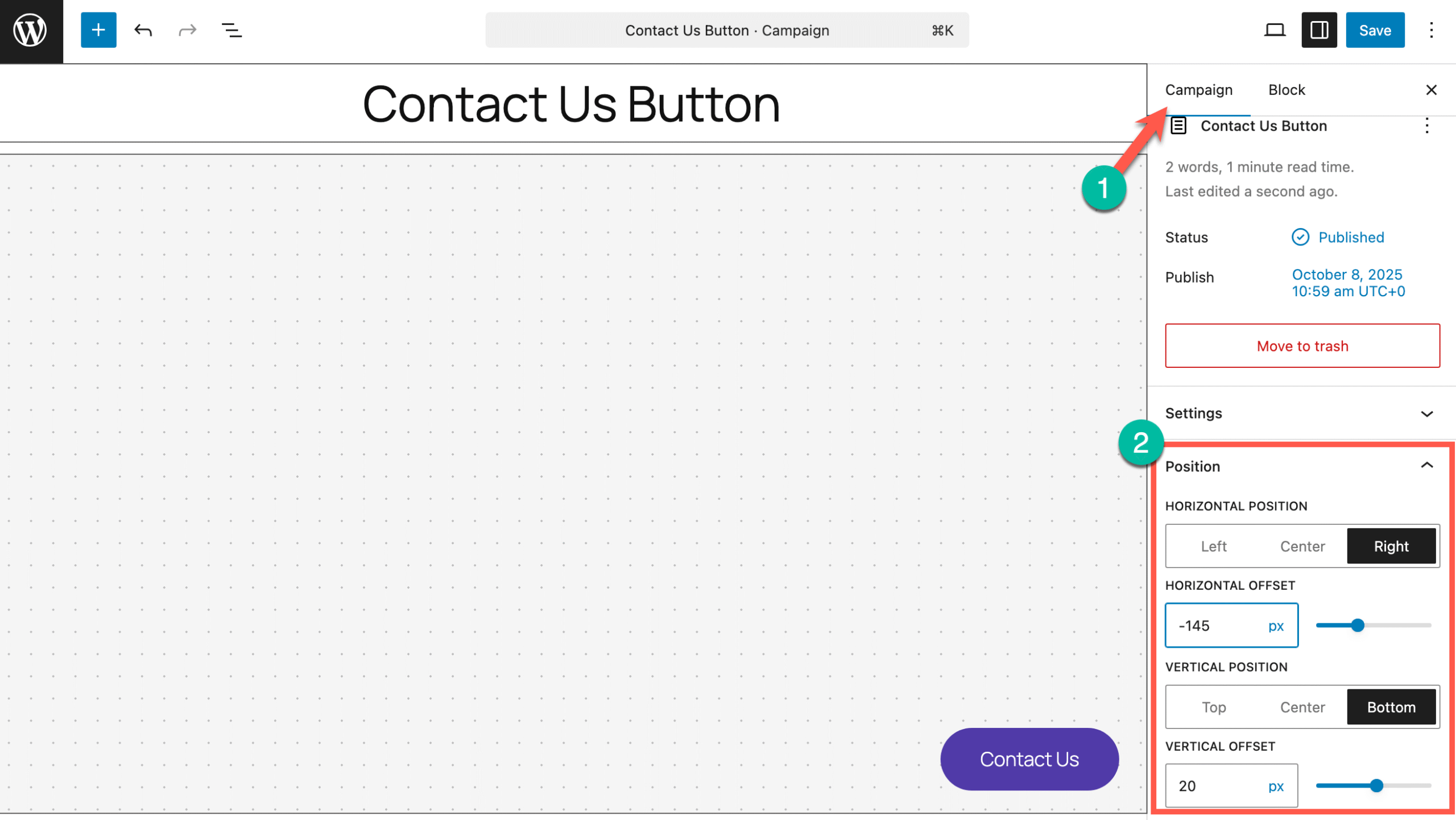 Step 5: Change Button Position (if needed) and Publish the Campaign