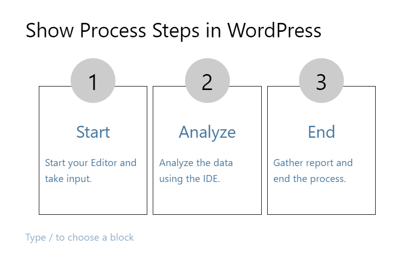 Depending on your preference or content type, here are four different ways you can display process steps using Ultimate Blocks. Choose the method that best fits your design and flow.