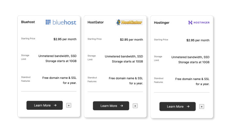 The Comparison Cards pattern presents multiple providers side by side in a clean, card-based layout.